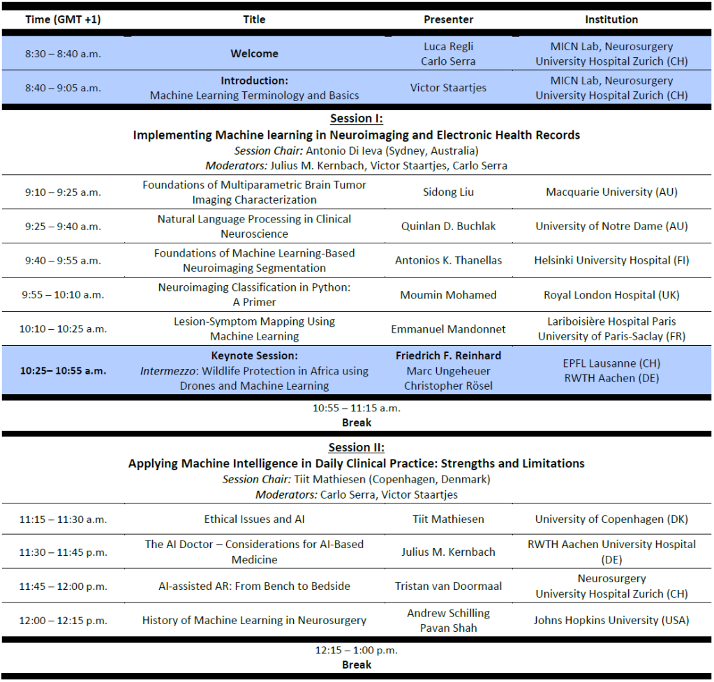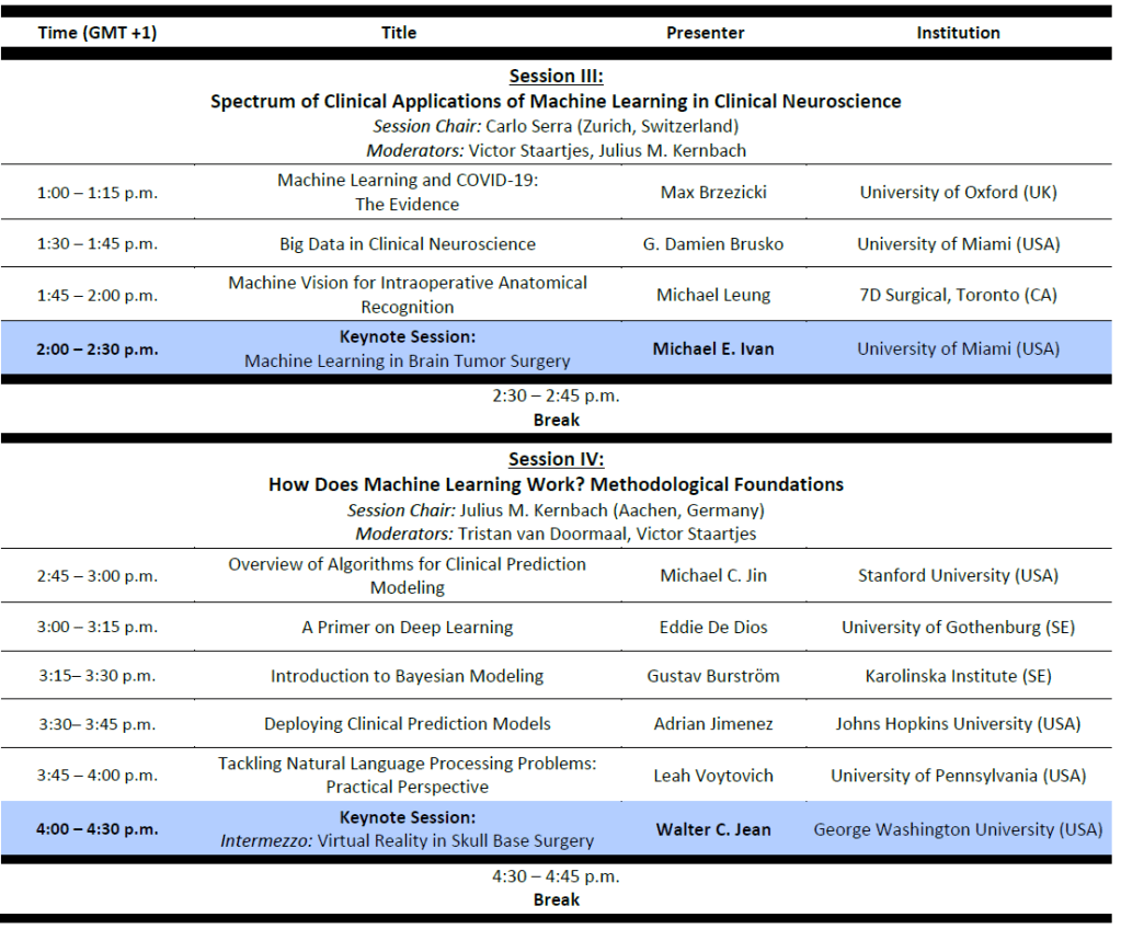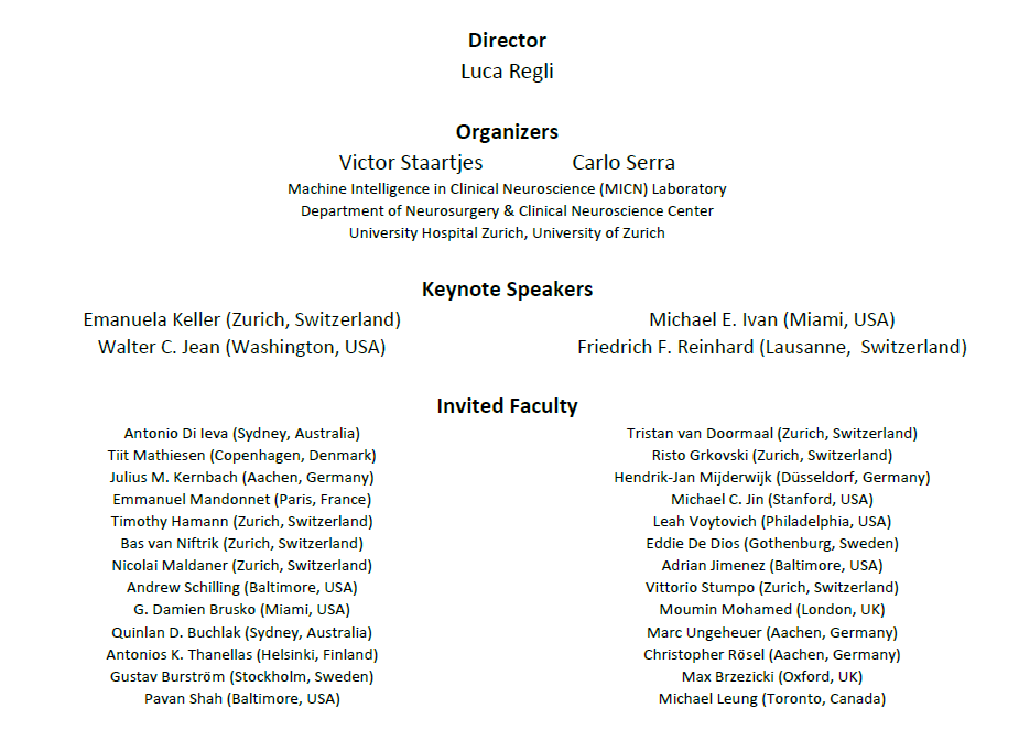 Moderators: Julius M. Kernbach, Victor Staartjes, Carlo Serra